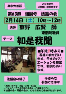 新年あけましておめでとうございます。 本年もどうぞよろしくお願いいたします。 2026年1月1日10時より、修正会を勤めました。 本年も道誠寺が多くの方々によって仏法聴聞の場であれたらと思っております。 年間行事予定表も […]